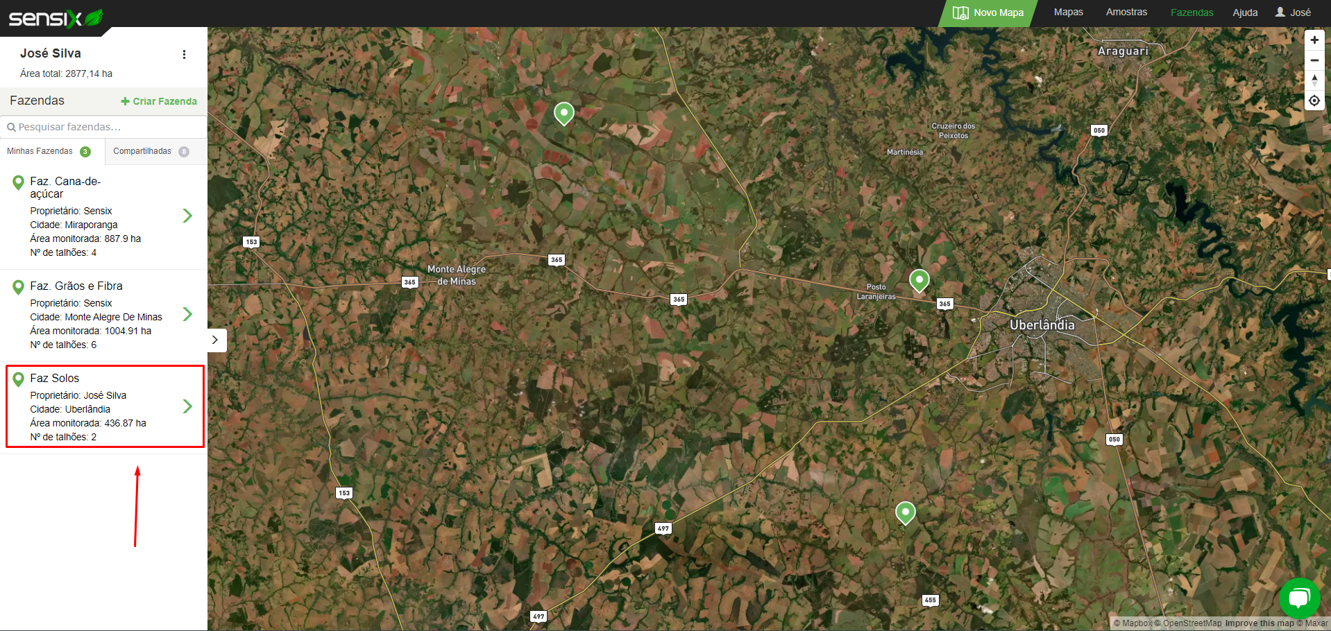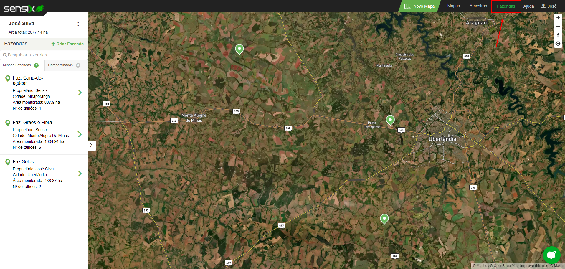 Acesse a aba de fazendas para visualizar todas aquelas cadastradas em sua conta: